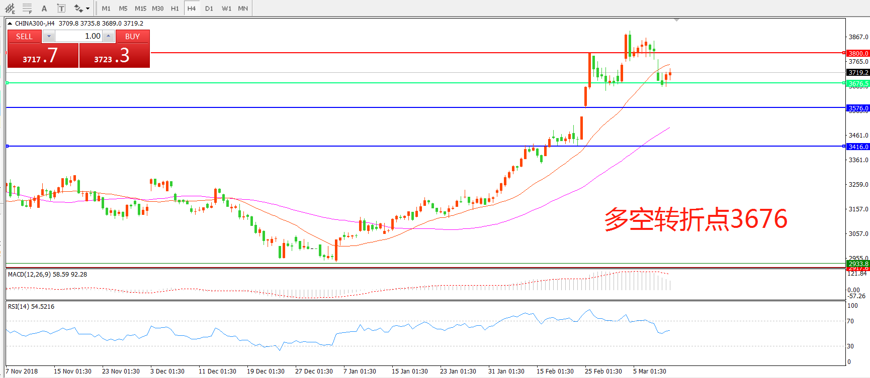 中华指数300CHINA3004小时图