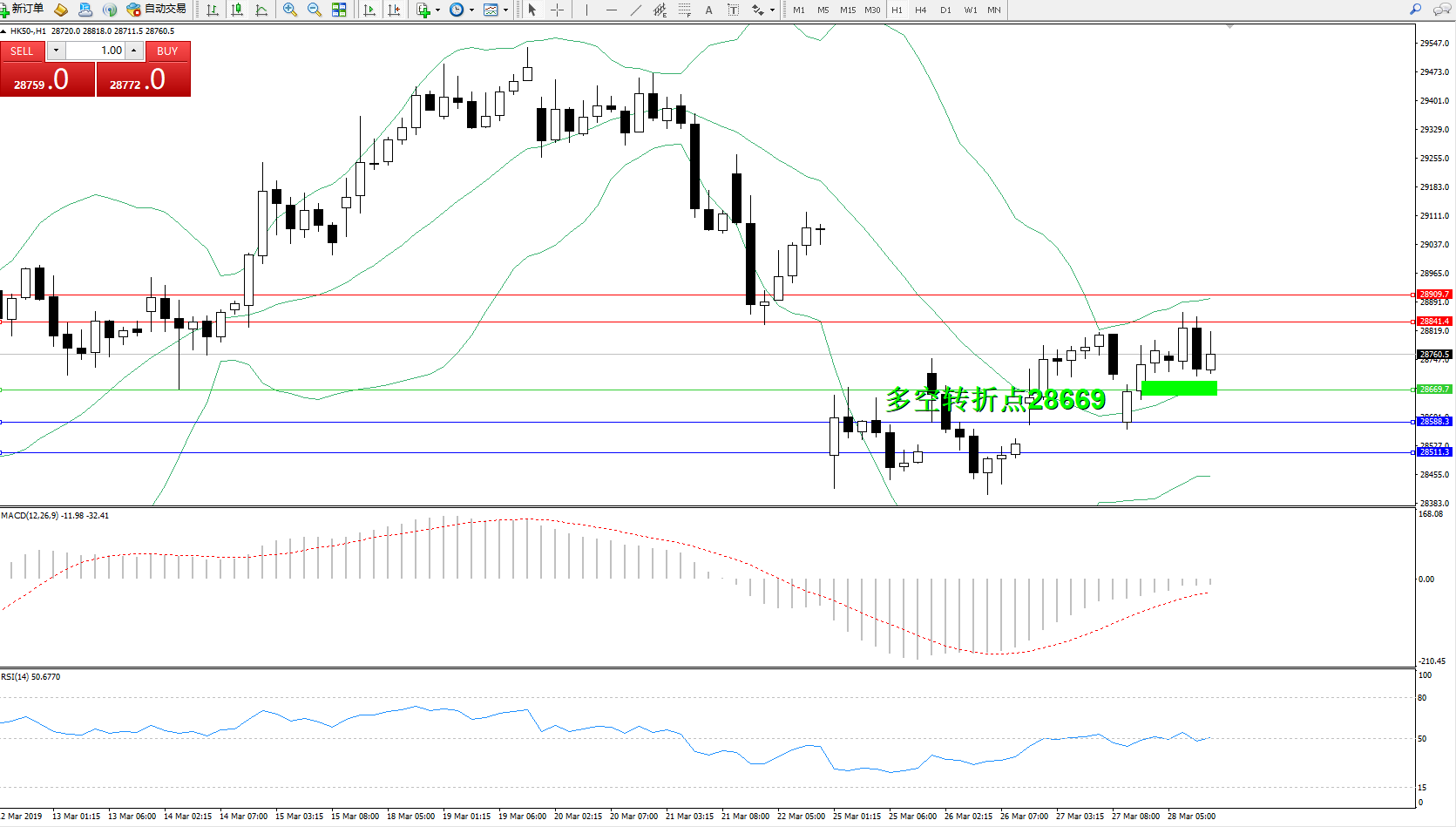 恒指HK50 ——1小时K线图显示:
