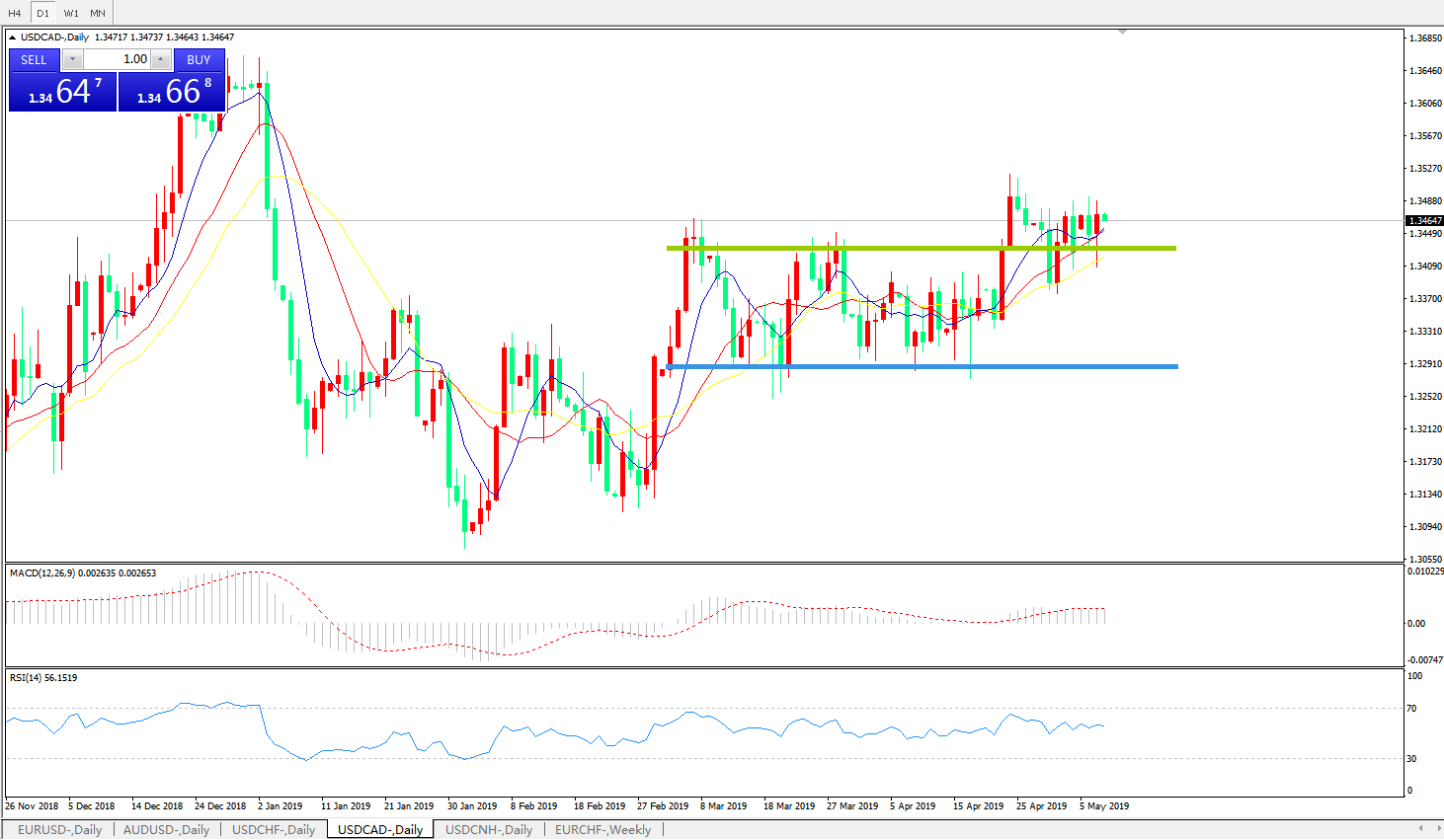 美元兑加元USDCAD 日线图: