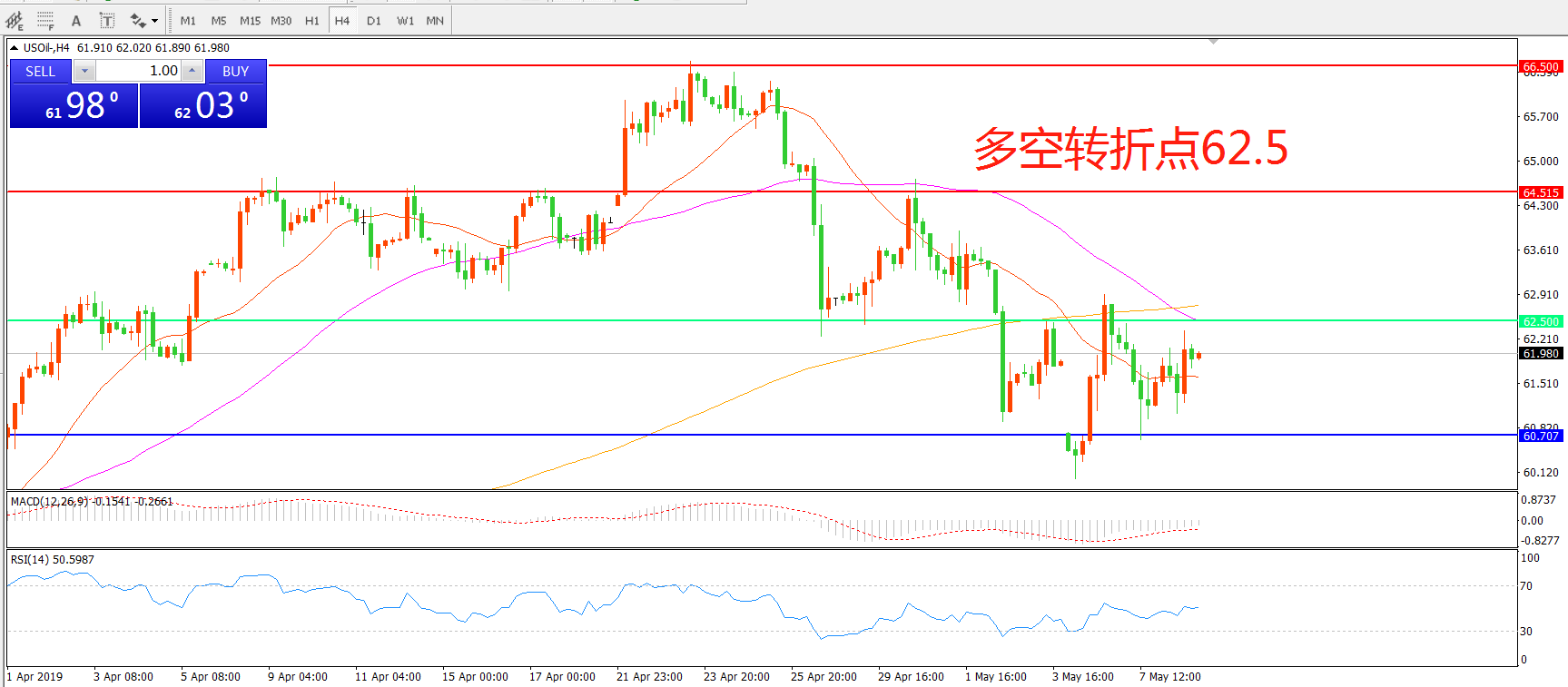 多空转折点:62.50