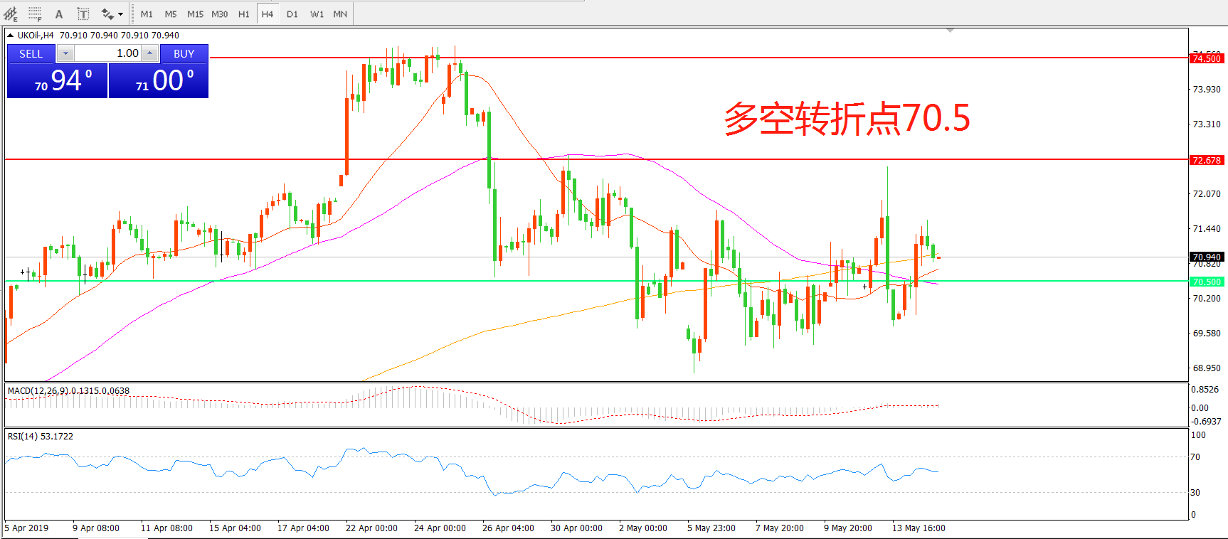多空转折点:70.50