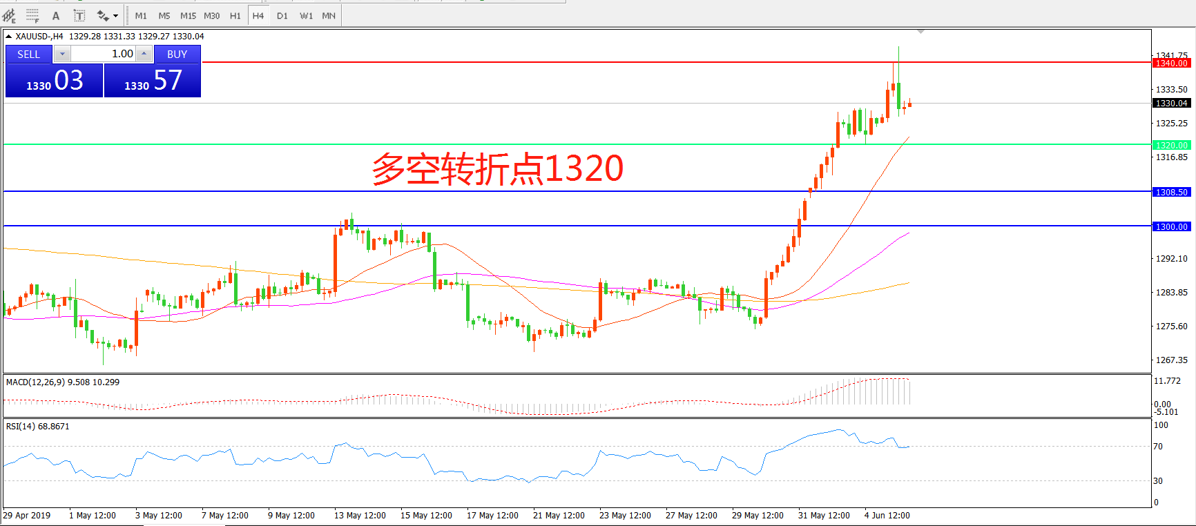 多空转折点:1320.00