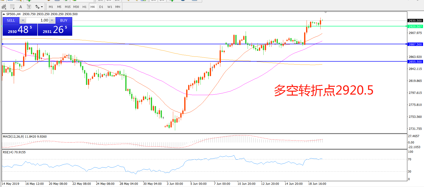 多空转折点:2920.50