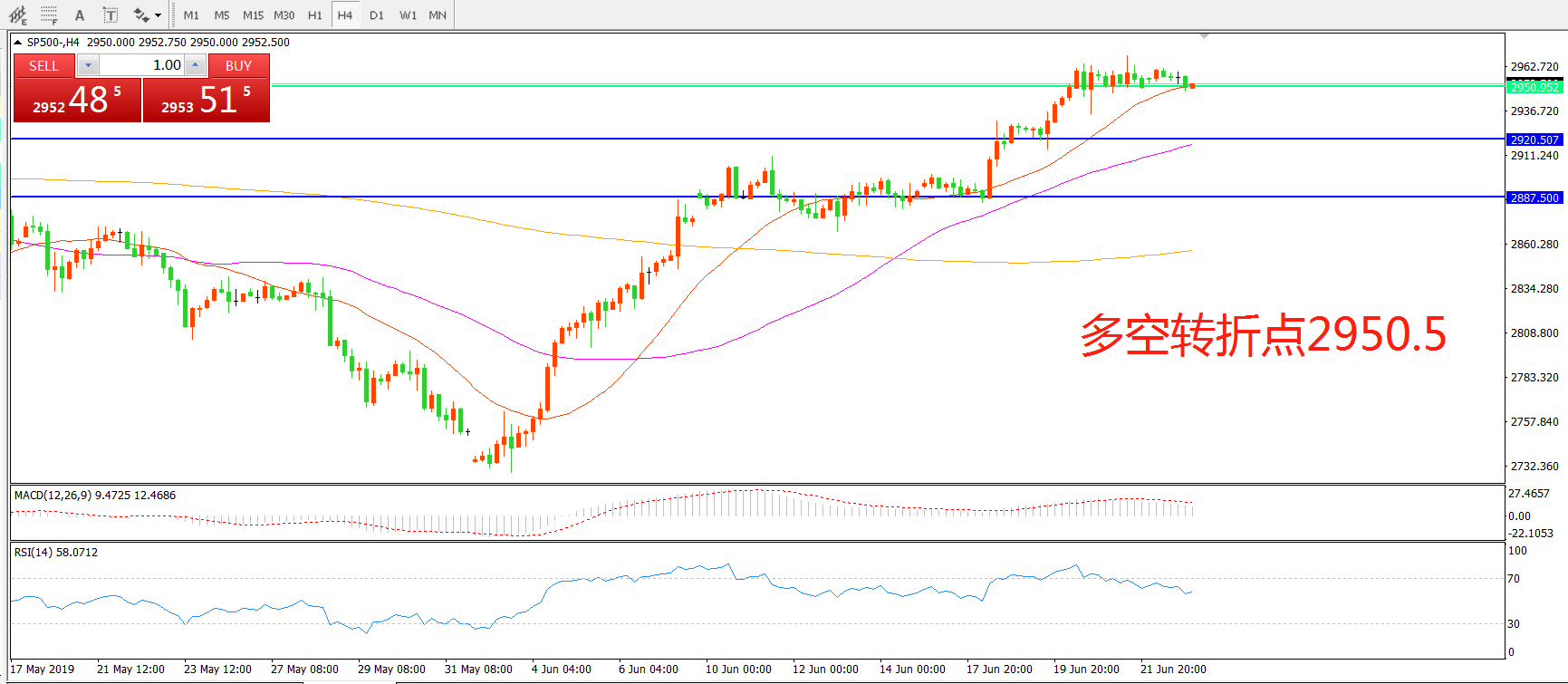 多空转折点:2950.50