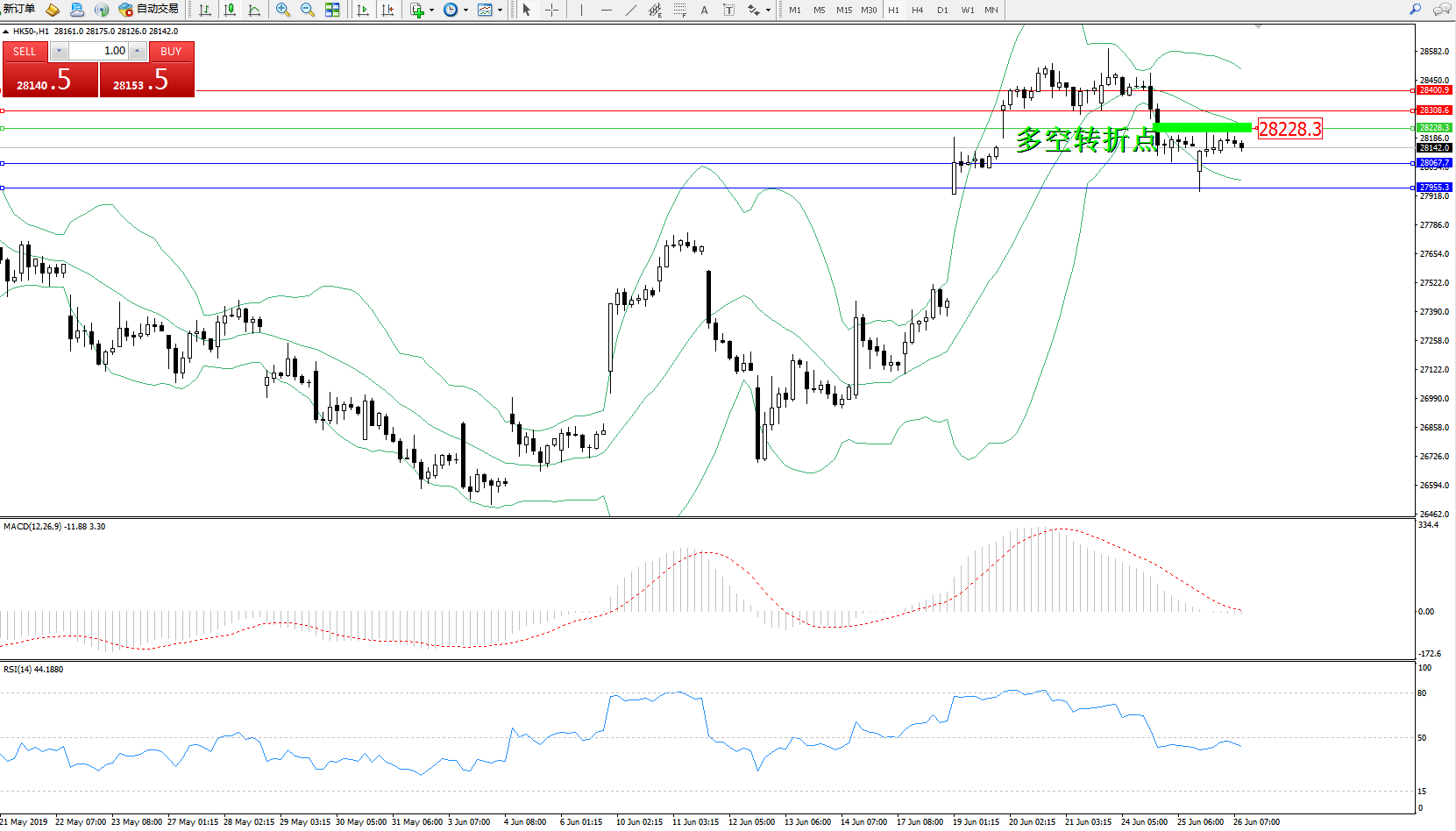 恒指HK50 ——1小时K线图显示: