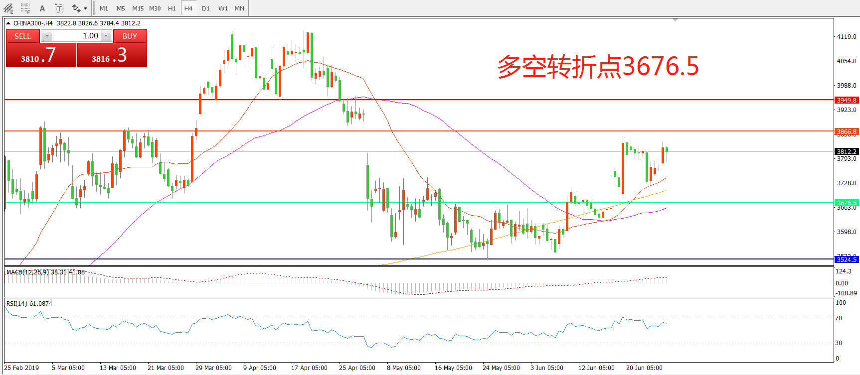 沪深300指数CHINA300 4小时图