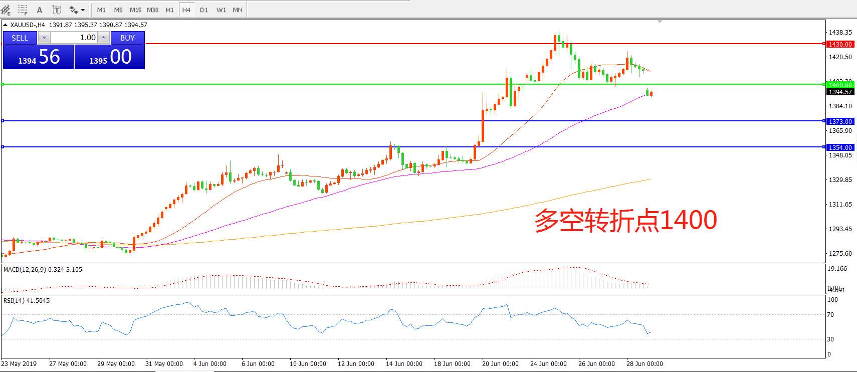 多空转折点:1400.00