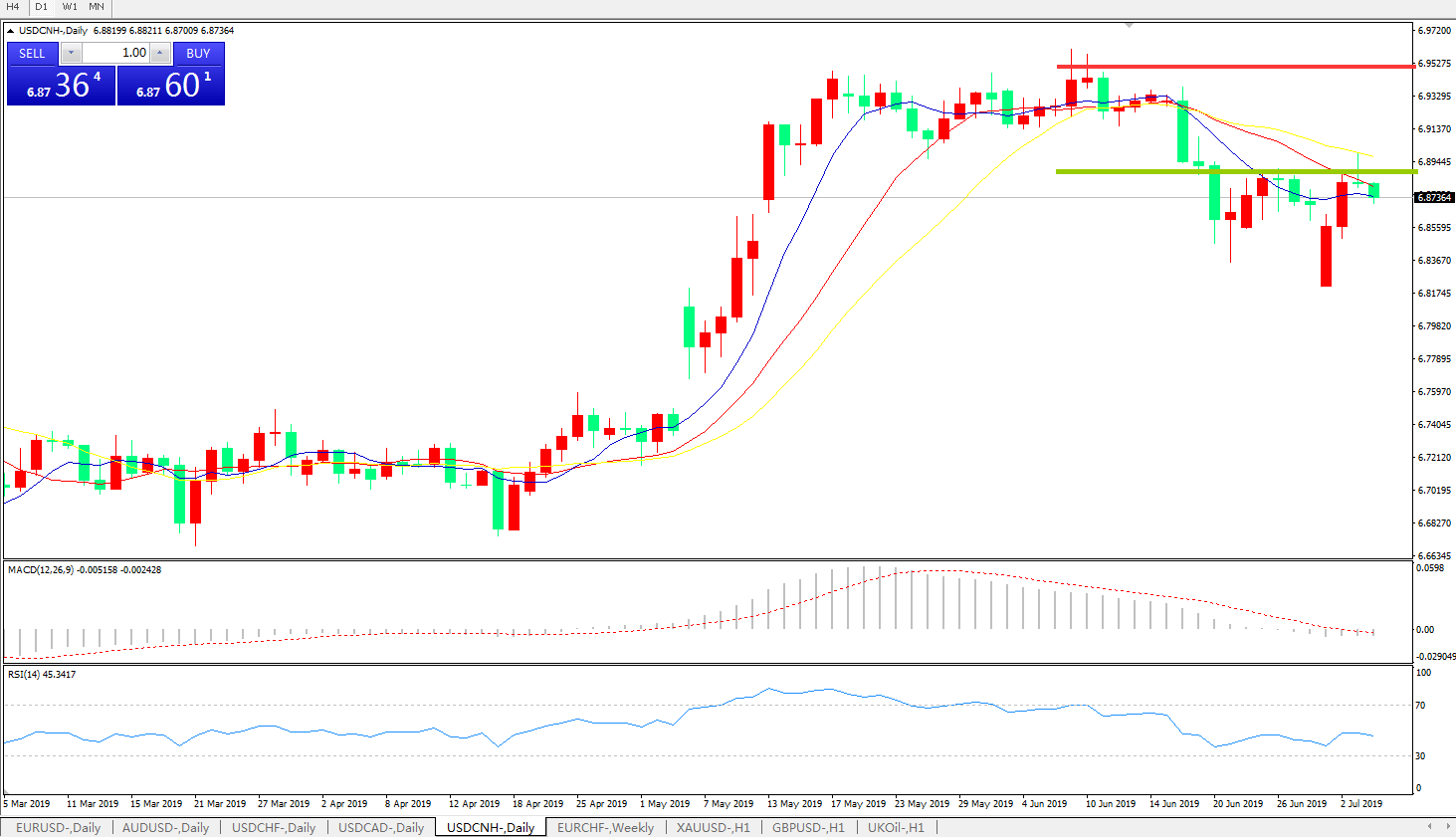 备选策略:6.9000之上,看涨,目标价位为6.9600,然后为6.9800