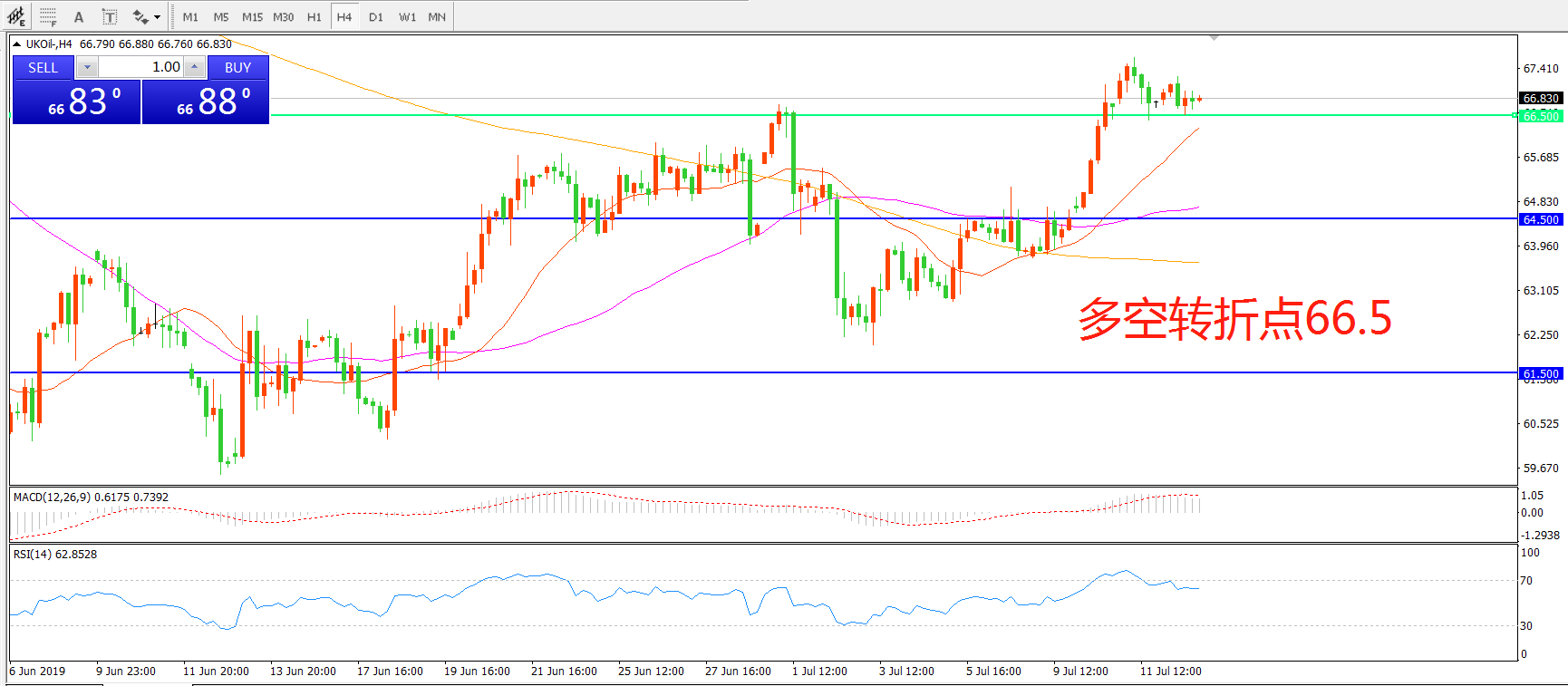 交易策略:在66.50之上看涨,目标70.00 73.00