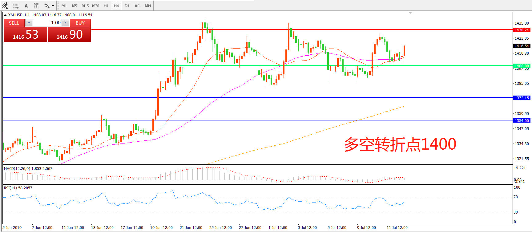 多空转折点:1400.00