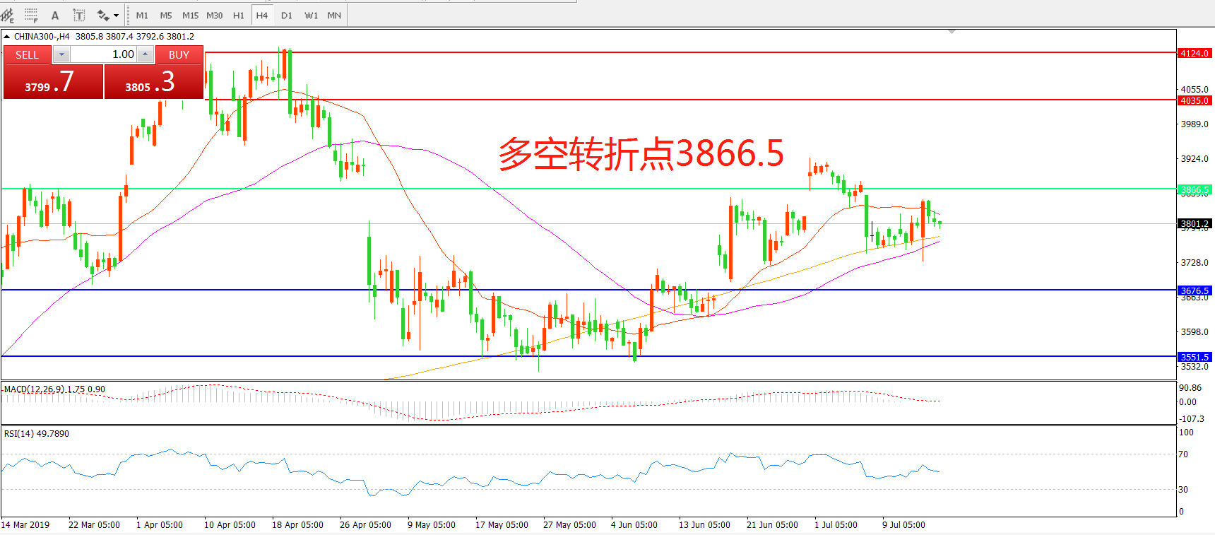 沪深300指数CHINA300 4小时图