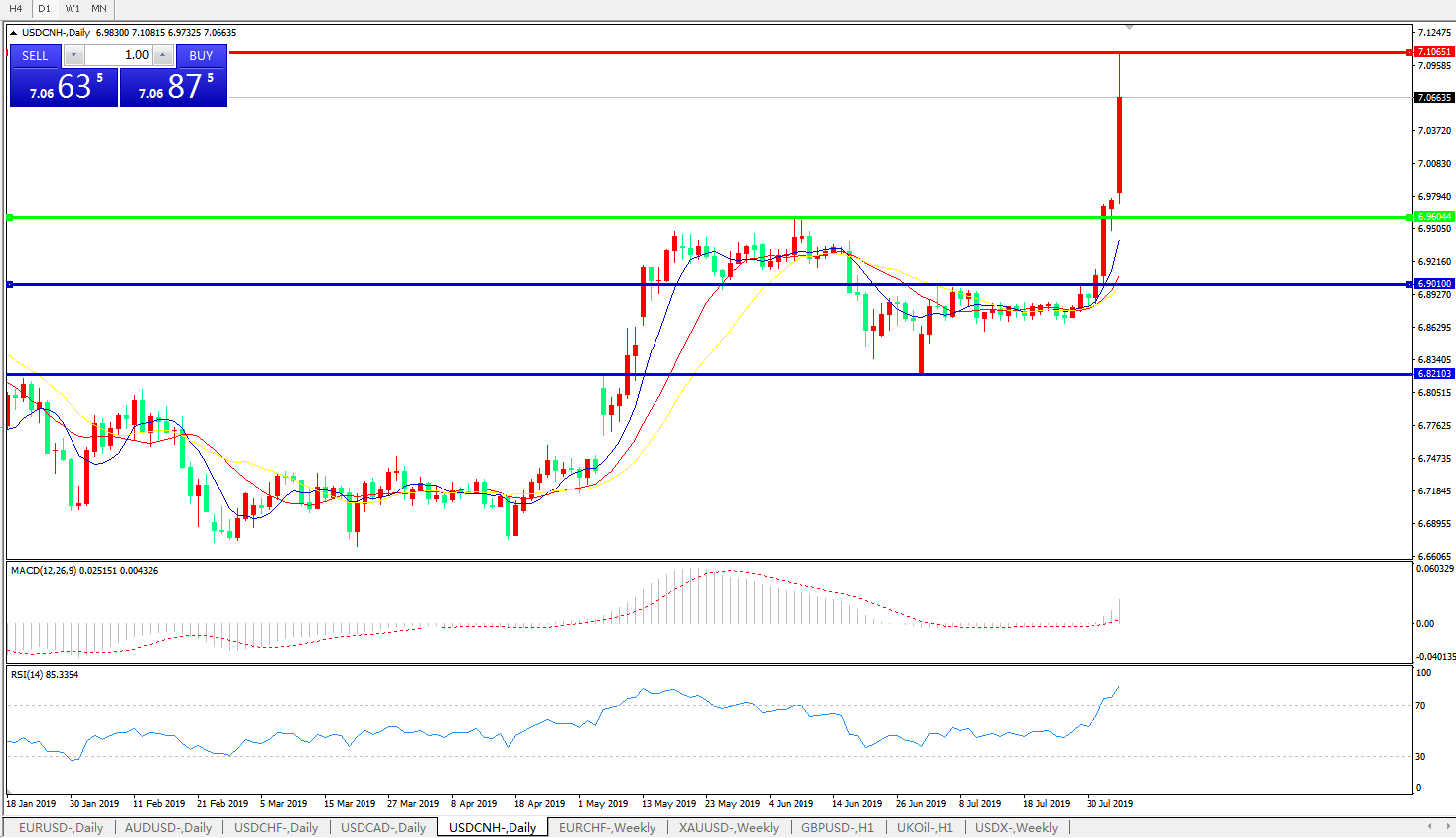 交易策略: 在6.9605之上,看涨,目标价位为6.7100,然后为7.2000。