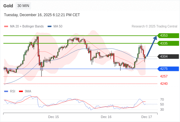 在 4275 之上,看涨,目标价位为 4335 ,然后为 4353 。