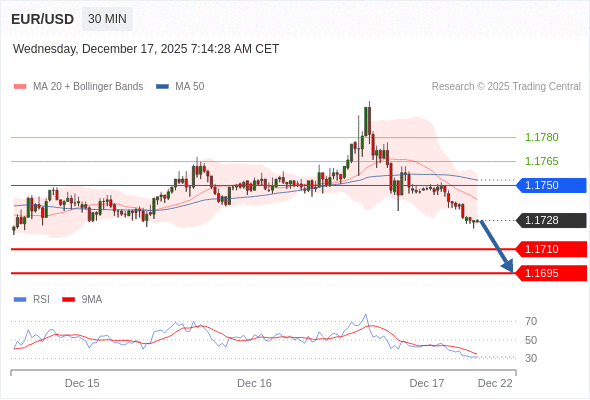 在 1.1750 之下,看跌,目标价位为 1.1710 ,然后为 1.1695 。