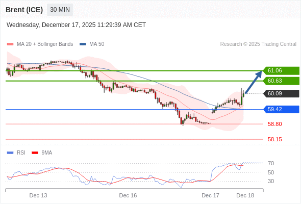 在 59.42 之上,看涨,目标价位为 60.63 ,然后为 61.06 。