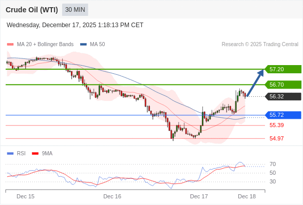 在 55.72 之上,看涨,目标价位为 56.70 ,然后为 57.20 。