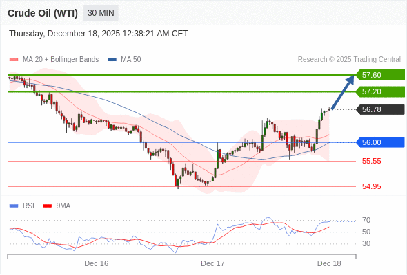 在 56.00 之上,看涨,目标价位为 57.20 ,然后为 57.60 。