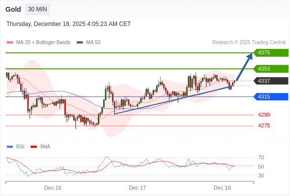 在 4315 之上,看涨,目标价位为 4353 ,然后为 4375 。