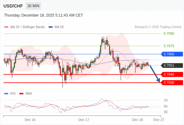 在 0.7965 之下,看跌,目标价位为 0.7940 ,然后为 0.7930 。