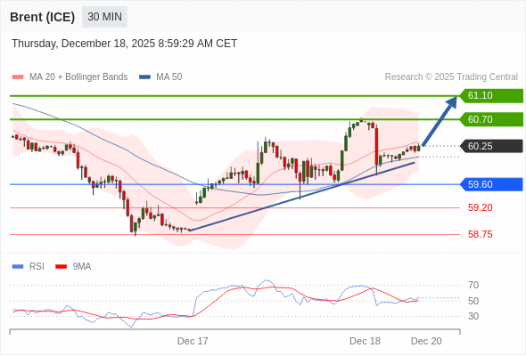 在 59.60 之上,看涨,目标价位为 60.70 ,然后为 61.10 。