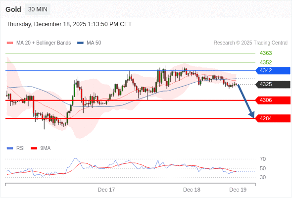 在 4342 之下,看跌,目标价位为 4306 ,然后为 4284 。