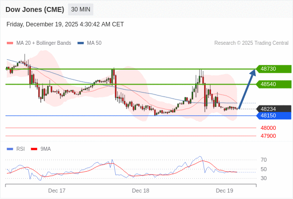 在 48150 之上,看涨,目标价位为 48540 ,然后为 48730 。
