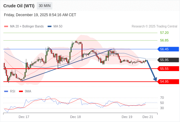 在 56.45 之下,看跌,目标价位为 55.55 ,然后为 54.95 。