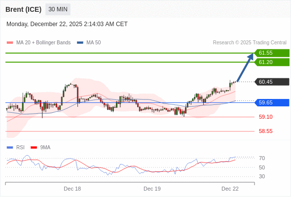 交易策略: 在 59.65 之上,看涨,目标价位为 61.20 ,然后为 61.55 。