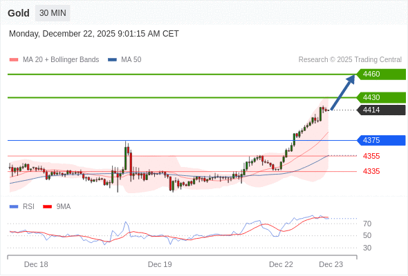 在 4375 之上,看涨,目标价位为 4430 ,然后为 4460 。