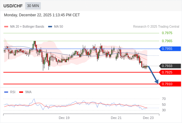 在 0.7955 之下,看跌,目标价位为 0.7925 ,然后为 0.7910 。