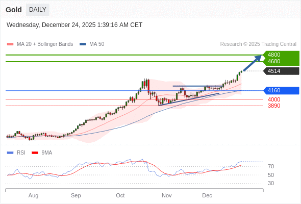 在 4160 之上,看涨,目标价位为 4680 ,然后为 4800 。