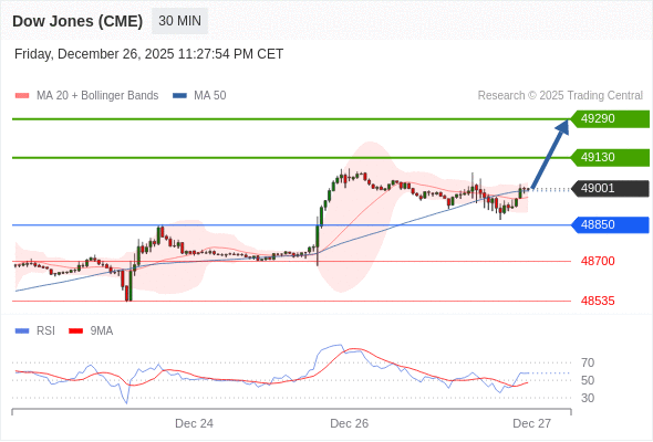 在 48850 之上,看涨,目标价位为 49130 ,然后为 49290 。