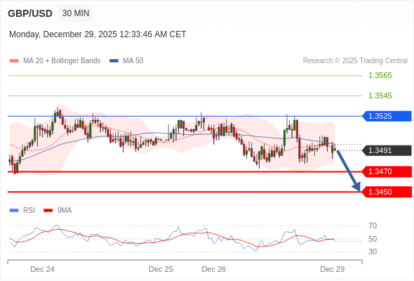在 1.3525 之下,看跌,目标价位为 1.3470 ,然后为 1.3450 。