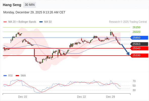 在 25850 之下,看跌,目标价位为 25540 ,然后为 25330 。