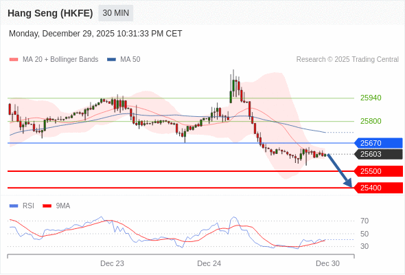 在 25670 之下,看跌,目标价位为 25500 ,然后为 25400 。