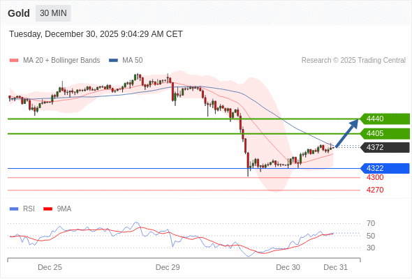 在 4322 之上,看涨,目标价位为 4405 ,然后为 4440 。