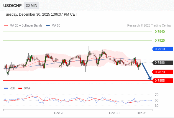 交易策略: 在 0.7910 之下,看跌,目标价位为 0.7870 ,然后为 0.7855 。