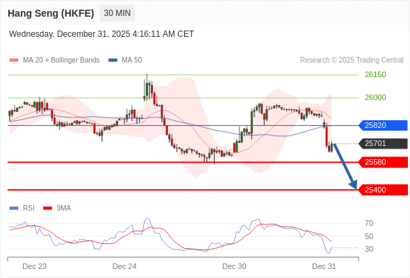 交易策略: 在 25820 之下,看跌,目标价位为 25580 ,然后为 25400 。