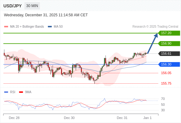 在 156.30 之上,看涨,目标价位为 156.90 ,然后为 157.20 。
