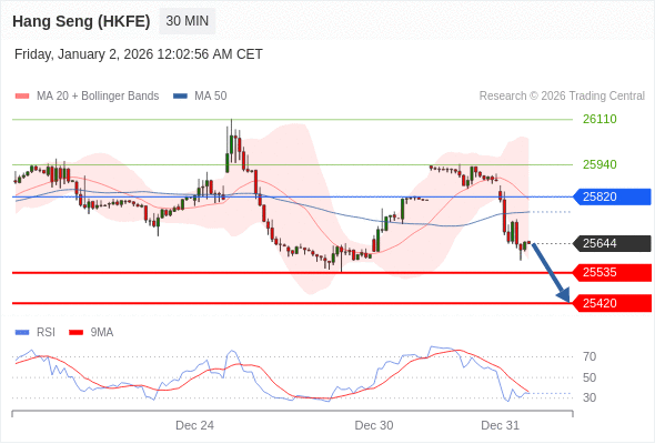 交易策略: 在 25820 之下,看跌,目标价位为 25535 ,然后为 25420 。
