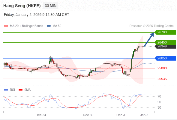在 26050 之上,看涨,目标价位为 26450 ,然后为 26700 。