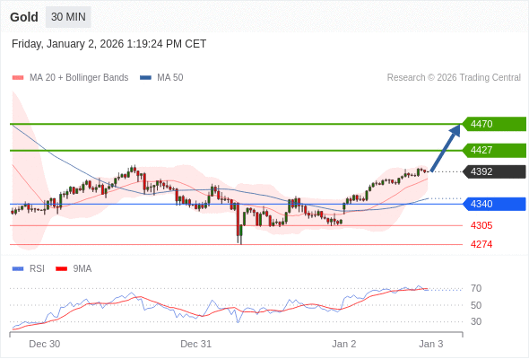 在 4340 之上,看涨,目标价位为 4427 ,然后为 4470 。