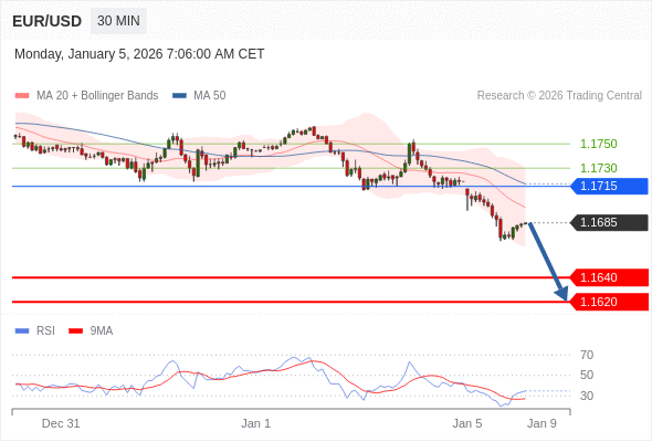 在 1.1715 之下,看跌,目标价位为 1.1640 ,然后为 1.1620 。