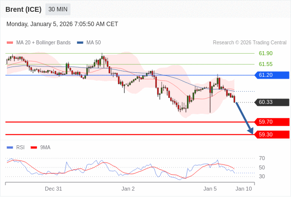 在 61.20 之下,看跌,目标价位为 59.70 ,然后为 59.30 。