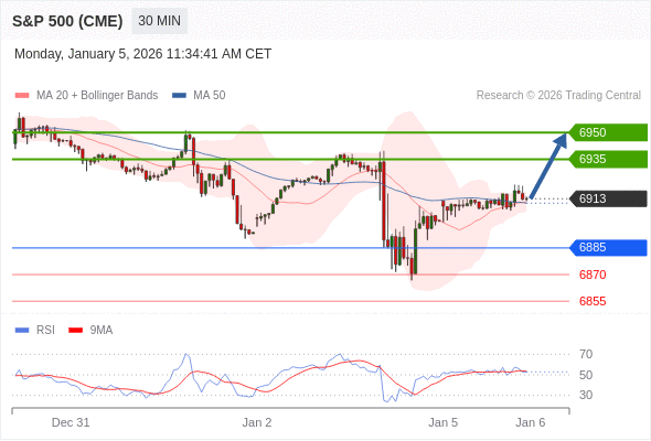 在 6885 之上,看涨,目标价位为 6935 ,然后为 6950 。