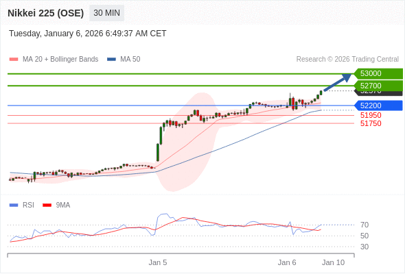 在 52200 之上,看涨,目标价位为 52700 ,然后为 53000 。