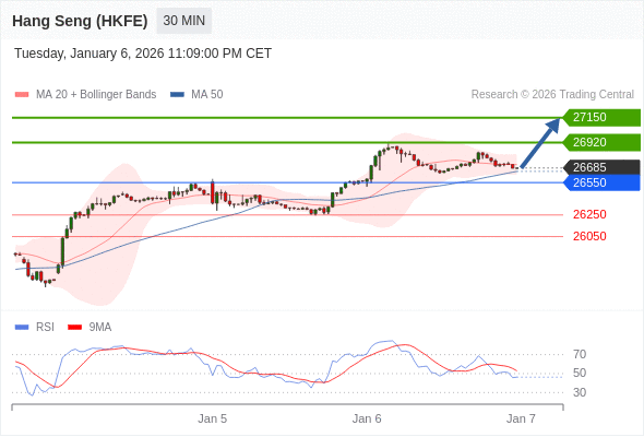 在 26550 之上,看涨,目标价位为 26920 ,然后为 27150 。