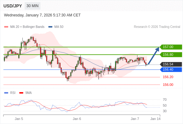 在 156.40 之上,看涨,目标价位为 156.80 ,然后为 157.00 。