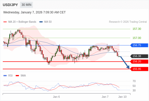 在 156.75 之下,看跌,目标价位为 156.20 ,然后为 155.95 。