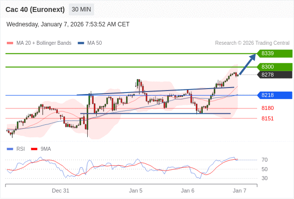在 8218 之上,看涨,目标价位为 8300 ,然后为 8339 。